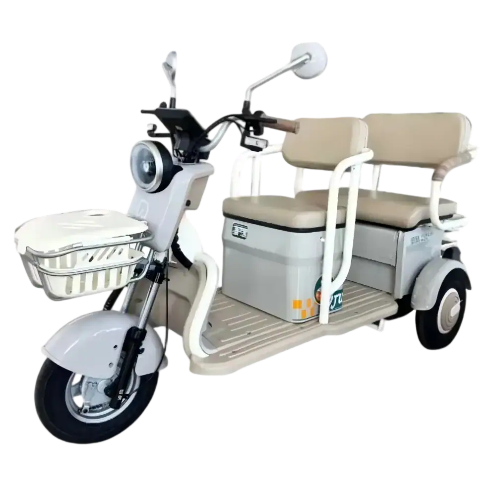 Equipped with drum/EBS brakes, hydraulic/spring suspension, and a backrest for a secure, comfortable ride